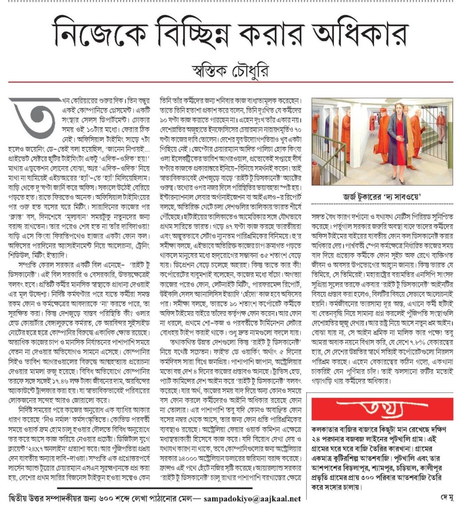 ‘রাইট টু ডিসকানেক্ট’ – কর্মক্ষেত্রে বহুল উপেক্ষিত একটি বিষয়! কেরালা সরকারের সাধুবাদ প্রাপ্য যে এহেন দীর্ঘকালের অবহেলিত একটি বিষয়ে তারা হস্তক্ষেপ করেছে। ঈশ্বরের আপন দেশে সরকারি ও বেসরকারি উভয়ক্ষেত্রেই বলবৎ হবে এই আইন। কিন্তু গোটা দেশজুড়ে এই বিলের গুরুত্ব কতখানি? কর্মক্ষেত্রে মানসিক স্বাস্থ্য রক্ষায় কতটাই বা সচেতন দেশব্যাপী কর্পোরেটগুলো? তারই খানিক প্রতিফলন ধরা রইল আজকালের পাতায়…